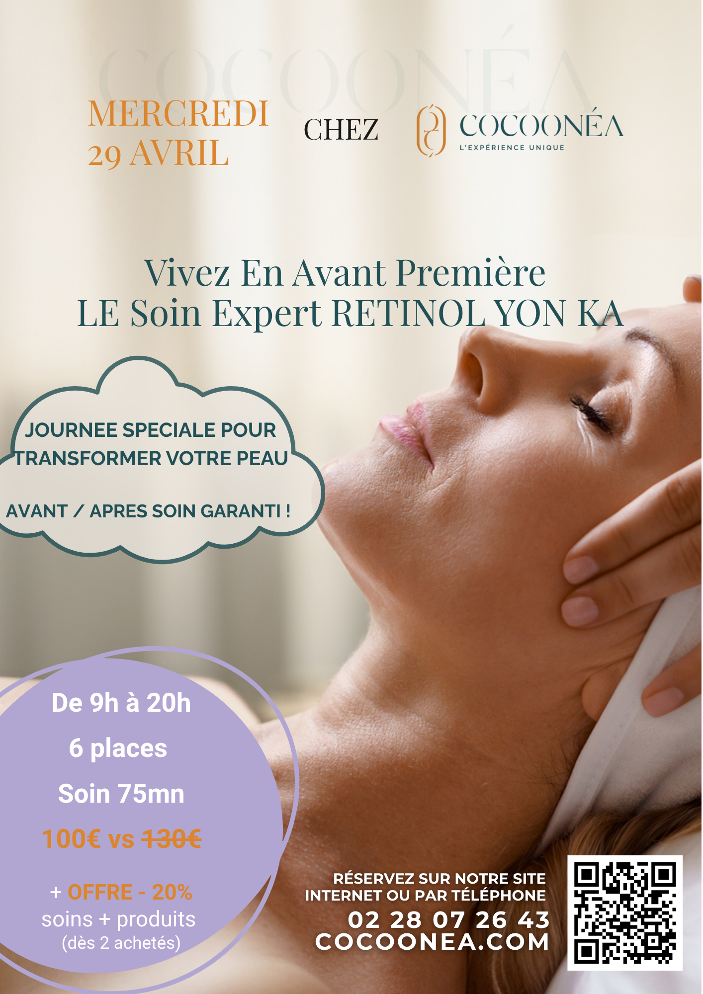 - Soin visage expert (Éclat ou Jeunesse) sous cocon (1h)